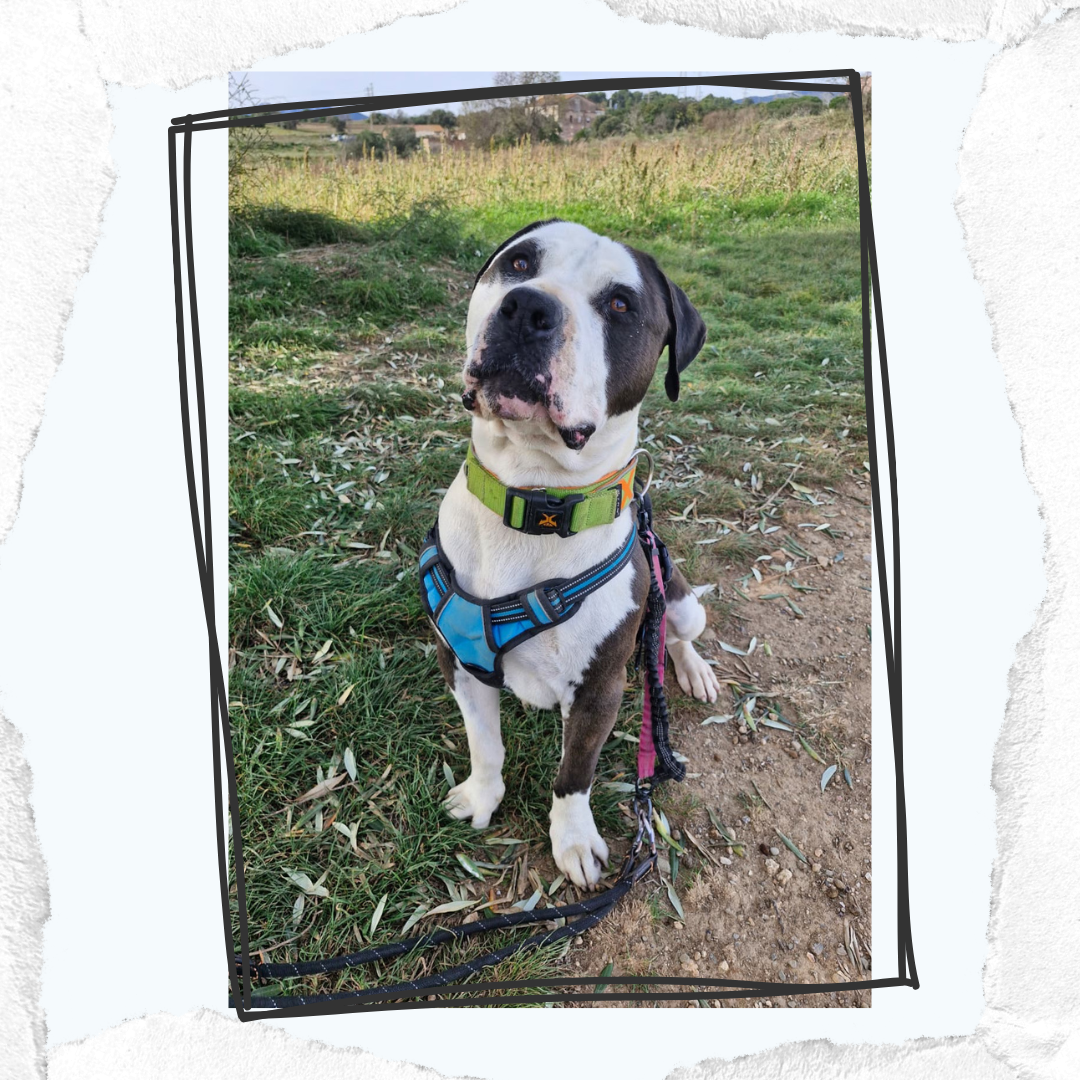Cabezón es un perrito muy calmado. Con las personas le cuesta un poquito más al principio, se nota que no ha tenido buenas experiencias. Aún así, ahora empieza a mostrar lo que siente por nosotros ya que se pone muy contento cuando nos ve y sabe que no todos los humanos hacen daño.