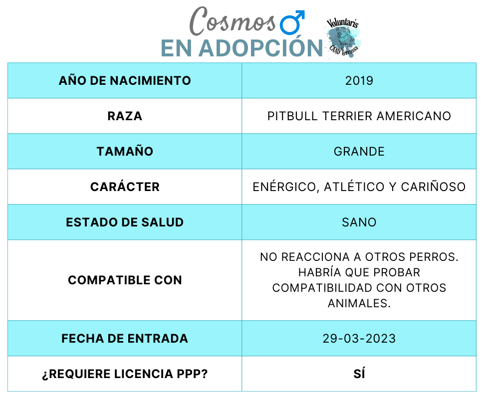 Mi tercera vida comenzará el día en que una familia se fije en mi y me dé el hogar que tanto necesito. Yo solo le pido paciencia y mucho amor, a cambio seré el amigo más fiel que jamás podrás imaginar.