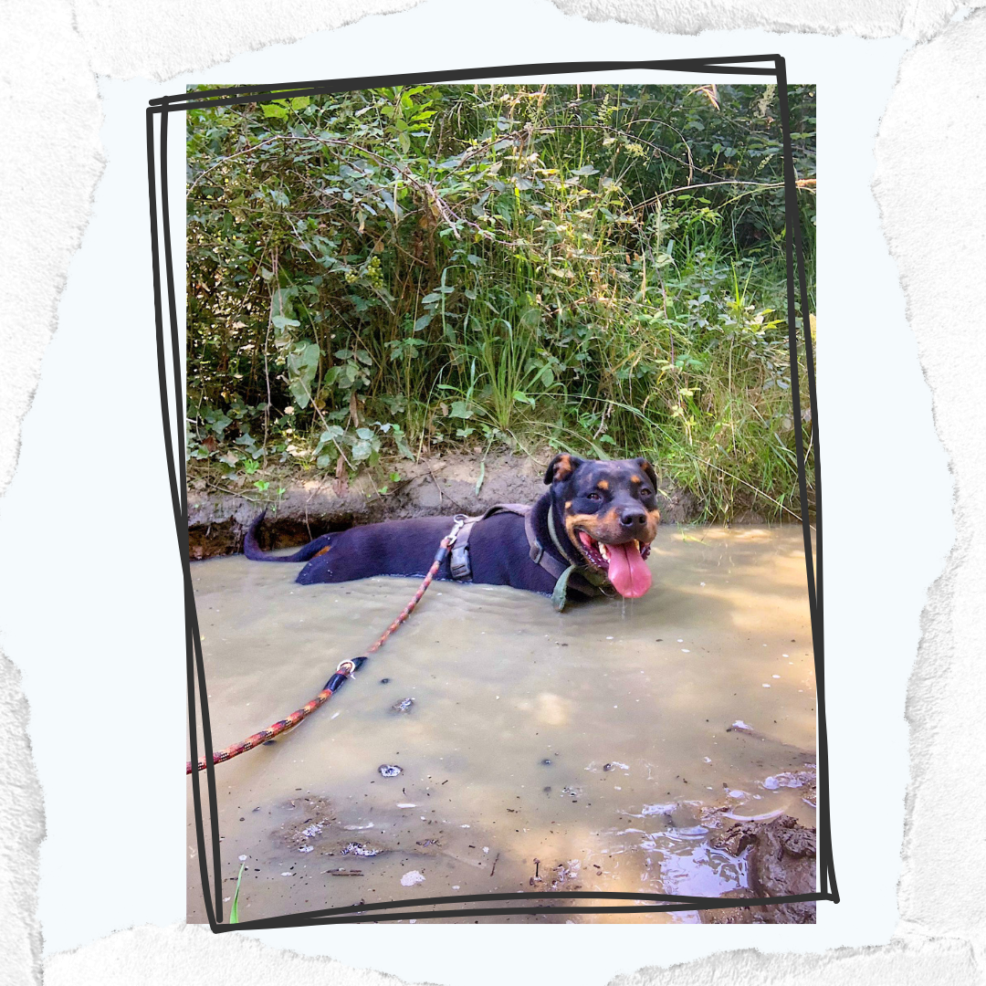 Tengo un carácter muy bueno y paseo muy bien pero de la ansiedad que paso en la jaula, a veces me da por morder correa, esto es debido a que estoy en una residencia externa donde los paseos son reducidos... y claro, cuando salgo a pasear, salgo con demasiadas ganas, pero en seguida se me pasa.