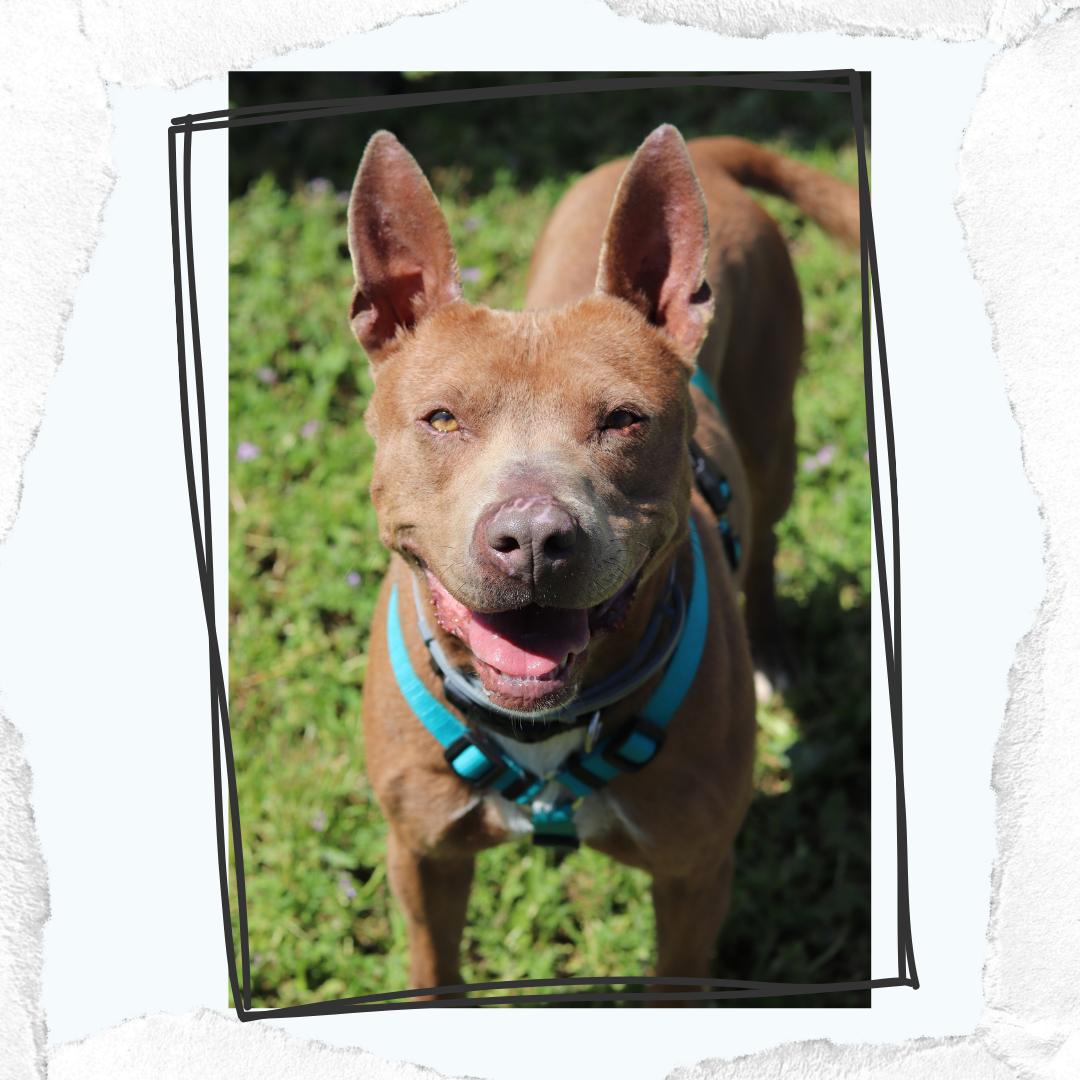 Soy una preciosa Pitbull mezclada con (podenco?) ya que esas orejas me delatan.